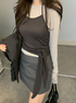 ロングスリーブインナーに、華奢なホルターネックキャミを重ねたレイヤードデザイン。