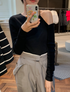 片側の肩をさりげなく見せる、アシンメトリーデザインのニットトップス。