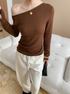 女性らしいデコルテラインを美しく引き立てるワンショルダーデザインのリブニットトップス。