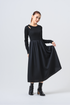 シンプルながらも洗練されたデザインで、カジュアルからフォーマルまで幅広く活躍します。肩のスリットが、スタイリッシュなアクセントを加えています。ウエスト部分はギャザー仕様になっており、自然なAラインシルエットを作り出し、フェミニンな雰囲気を演出します。程よい丈感でバランスが良く、ブーツやヒールと合わせることで、エレガントなコーディネートが楽しめます。