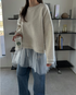 カジュアルなトレーナーに軽やかなチュールをプラスすることで、女性らしい抜け感とトレンド感を演出。