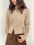 フェイクレザー襟がアクセントになった上品なジップニットトップス。