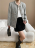 クラシカルで上品な雰囲気漂うツイードノーカラージャケット。