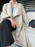ボリュームのあるラペルデザインとゆったりとしたシルエットが魅力のロングコート。高級感のあるウール混素材で暖かさと上品さを兼ね備えています。付属のベルトでウエストマークすれば女性らしいシルエットを演出でき、羽織るだけでも抜け感のあるスタイルに。オンオフ問わず幅広く活躍する一枚です。