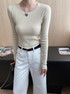 シンプルながらも美しいシルエットが魅力のリブニットトップス。