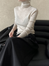 シンプルで上品な印象を与えるリブタートルネックニットトップス。