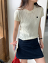 さりげないハート刺繍がポイントのリブ編みニットトップス。伸縮性のある柔らかい素材で、程よくフィットしつつもリラックス感のある着心地。カジュアルにもフェミニンにも着回せる万能アイテムです。