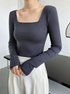 デコルテを美しく魅せるスクエアネックデザインのスリムカットソー。