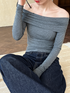 デコルテラインを美しく魅せるオフショルダーデザインの長袖カットソー。